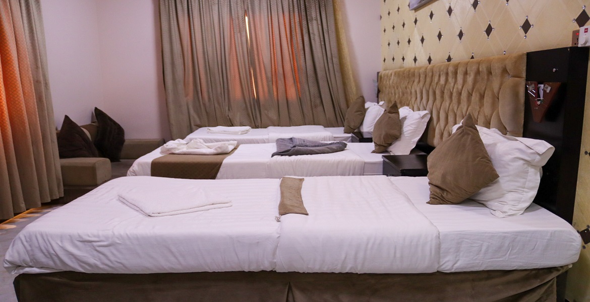 غرفة بثلاث أسرة
