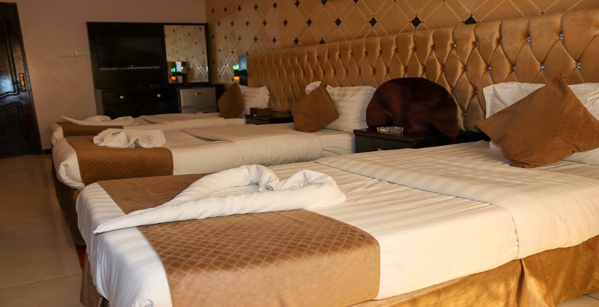 غرفة بثلاث أسرة
